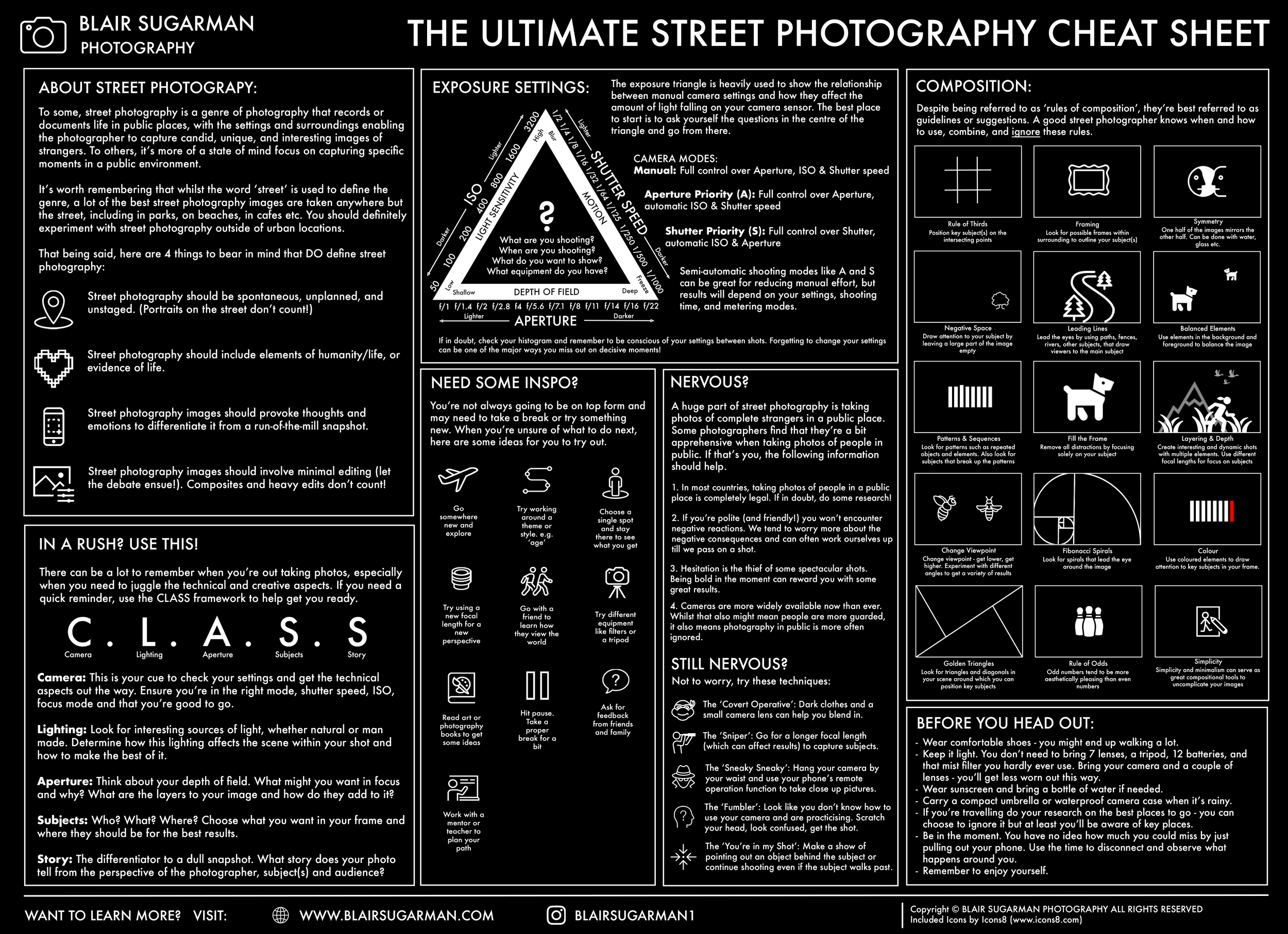 Level Up Your Photography: Photography Guides A Comprehensive Guide to Street Photography BLAIR SUGARMAN The Ultimate Street Photography Cheat Sheet BLAIR SUGARMAN Subscribe Sign up with your email address to receive news and updates. Email Address Sign Up We respect your privacy. Thank you!